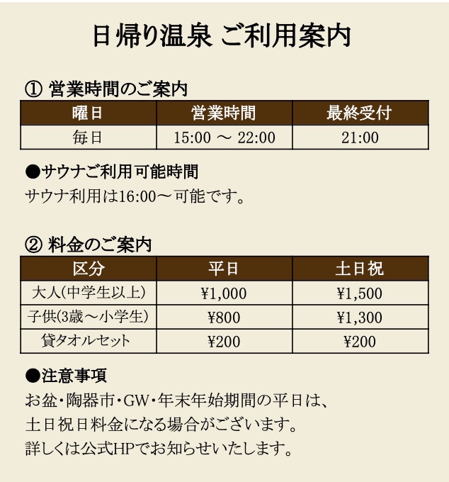 ♨️日帰り温泉入浴【営業時間延長のお知らせ】 2024年7月26日(金)